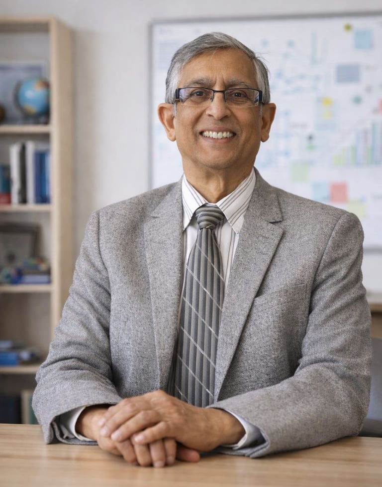 He holds a PhD from McMaster University, an MSc from the University of California Berkeley, and a BTech in Electrical Engineering from IIT Kharagpur. His career spans senior engineering and research roles, public and private sector consulting, and global academic engagement.